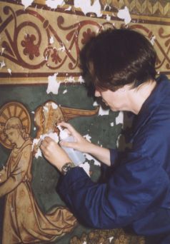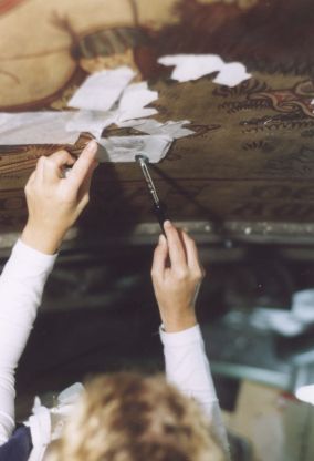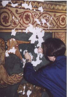 tissue was applied over the lifted paint flakes with